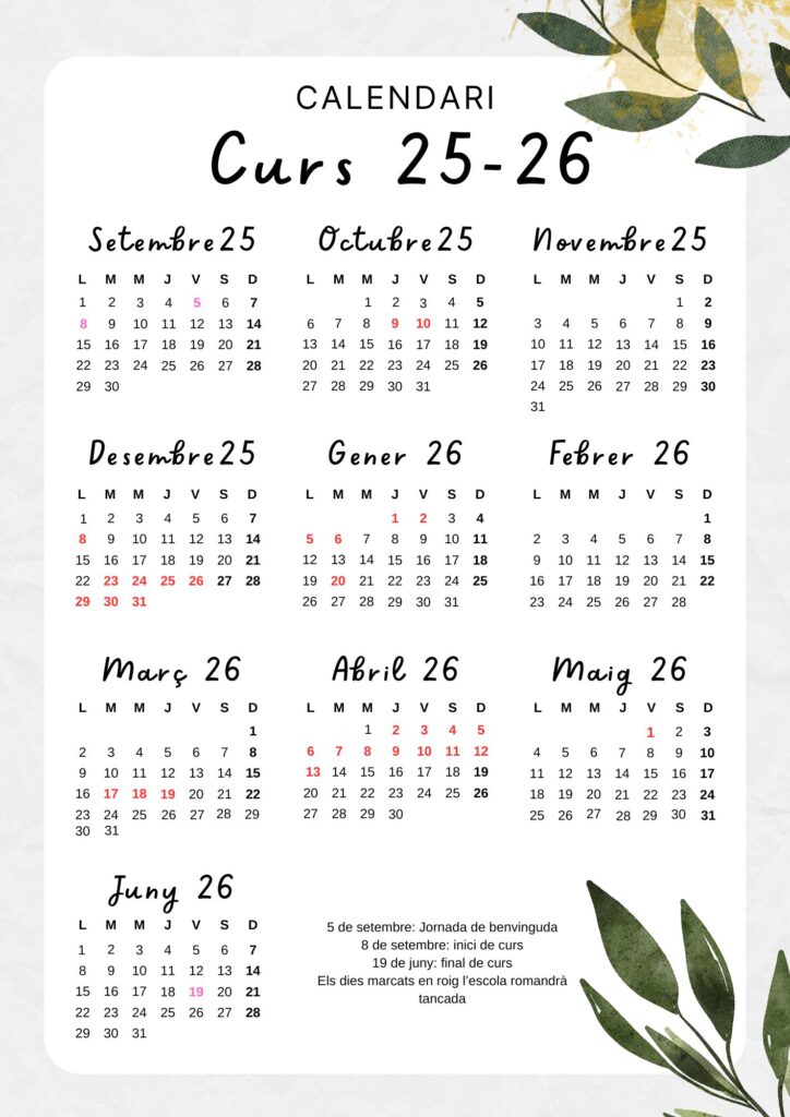 Calendari curs actual